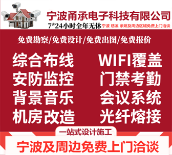 别看宁波甬承电子科技有限公司外表其貌不扬,他家的产品真的超级有保障。货比三家才是真正的好买家,不要看这个东西很好就买。或许你曾经认为便宜没好货,但是在宁波甬承电子科技有限公司这里好货都很便宜。选择一家正规可靠的公司特别重要,而宁波甬承电子科技有限公司就是一家资质齐全的良心公司。宁波甬承电子科技有限公司他家很注重对新客户的吸引和优惠,浙江宁波海曙专业综合布线、无线覆盖、监控安装、门禁考勤、光纤熔接、电话音响、机房改造等弱电工程服务,欢迎来电咨询!也很好找费用的话是不可预测的,因人而异,说说必花的!